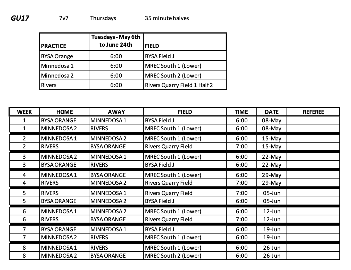 2025 WRSA GIRLS U17 COMMUNITY STREAM SCHEDULE