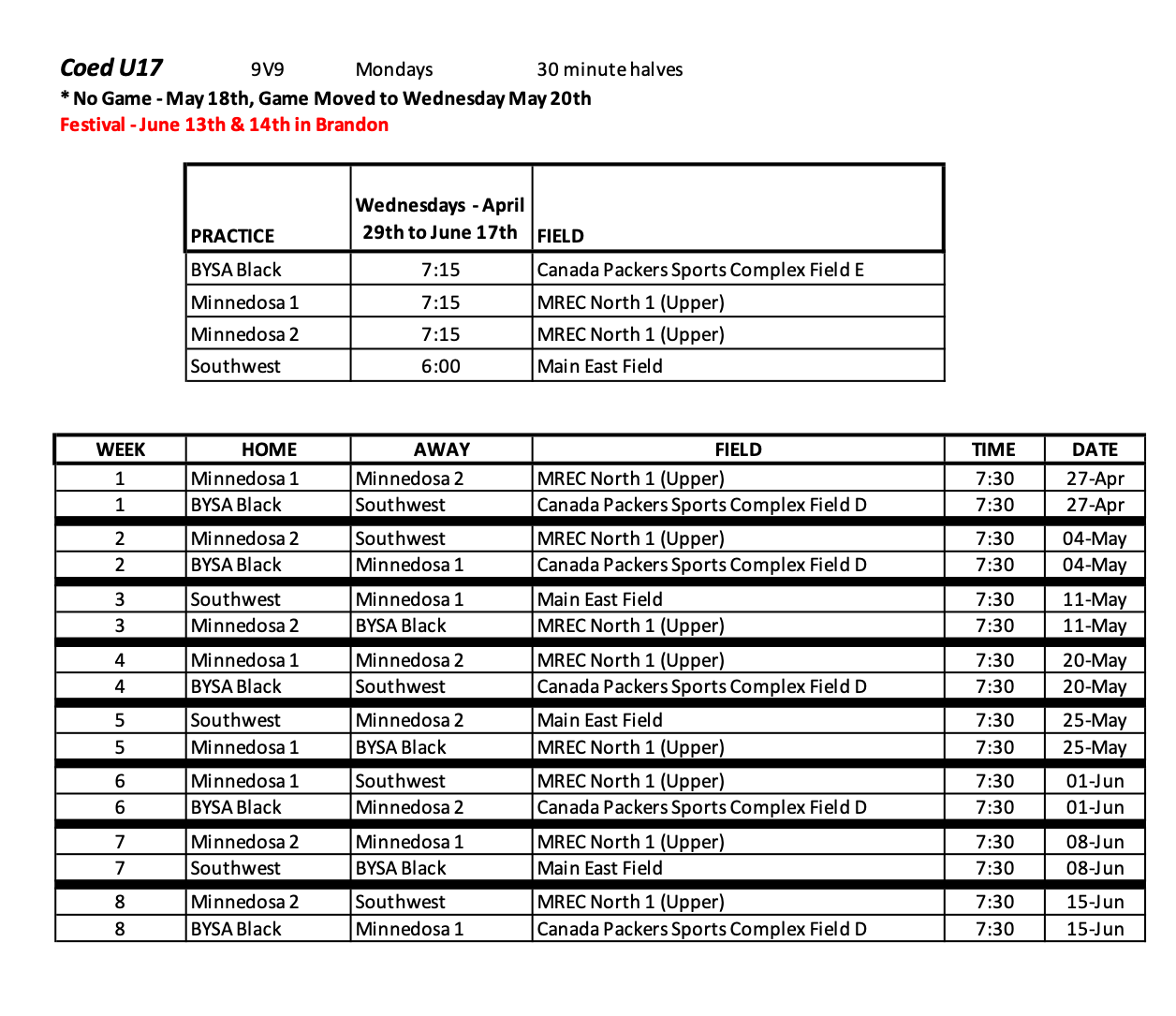 2026 WRSA Co-ed U17 Community Stream Schedule